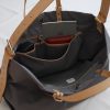 In der größeren der Innentaschen befindet sich ein praktischer Einsatz, mit drei unterschiedlich großen Fächern zum verstauen von Stiften, Portemonnaie, Mobiltelefon etc. Die verstellbaren Henkel und der Schultergurt aus kräftigem Leder lassen sich an die unterschiedlichsten Tragegewohnheiten anpassen. Die Größe ist ideal um die nötigen Dinge für einen langen Arbeitstag, einen Ausflug, Babyutensilien oder den Einkauf zu verstauen. Erhältlich in drei Farben (schwarz, blau, grau).